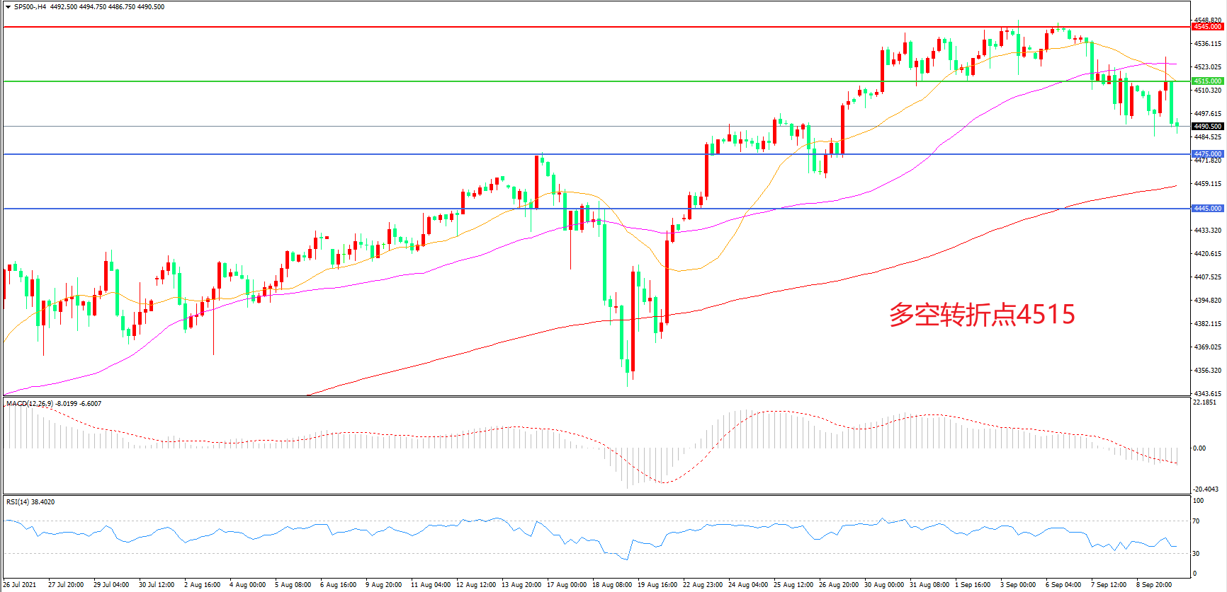 交易策略:在4515.00之下看跌,目标4475.00    4445.00