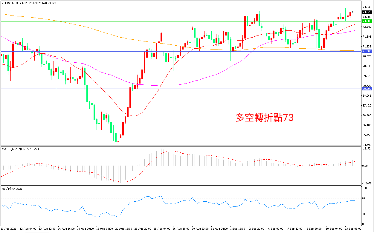 交易策略:在73.00之上看涨,目标75.00               78.00