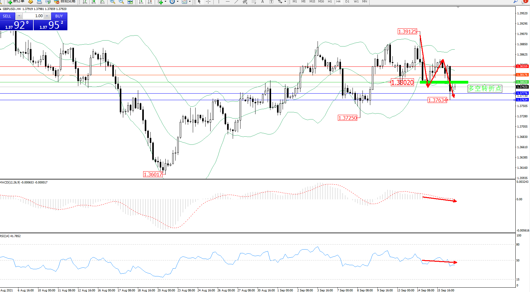 交易策略:1.38020下方看跌,目标1.37776、1.37634