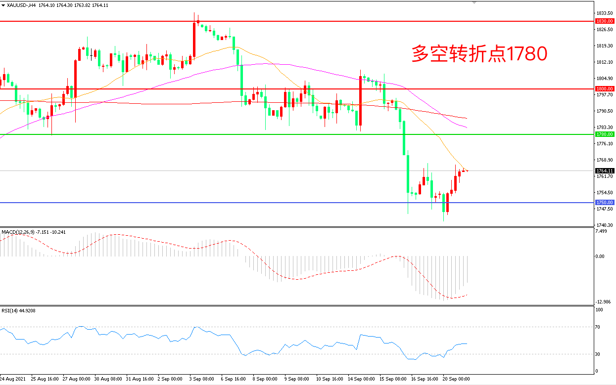 备选策略:在1780.00之上看涨,目标1800.00            1830.00