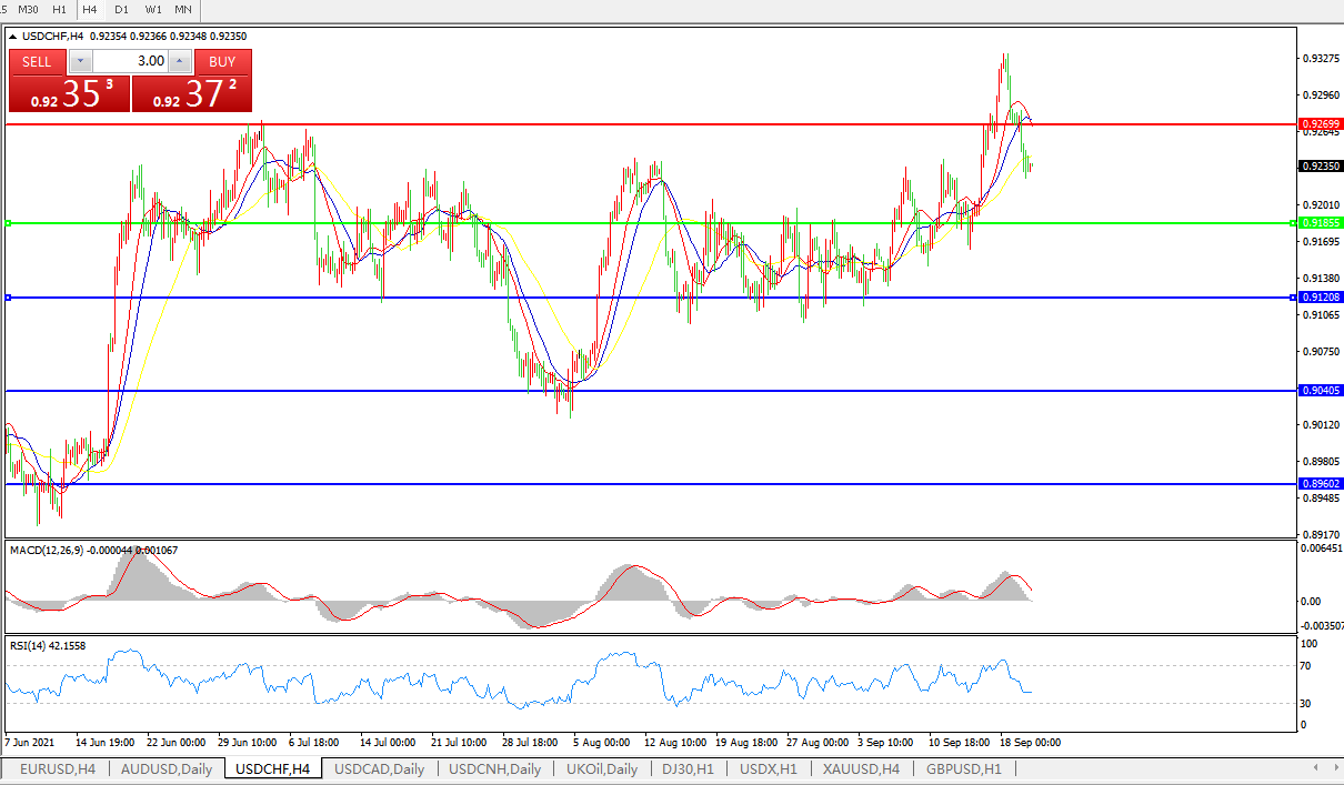 美元兑瑞郎USDCHF 4小时图: