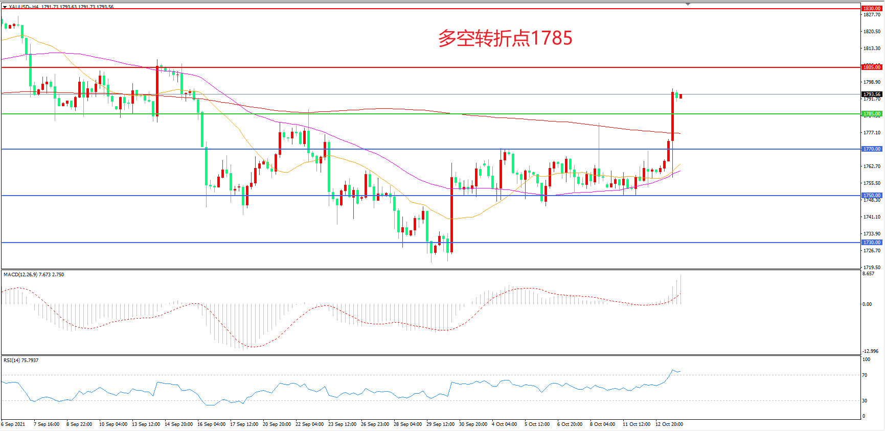 多空转折点:1785.00