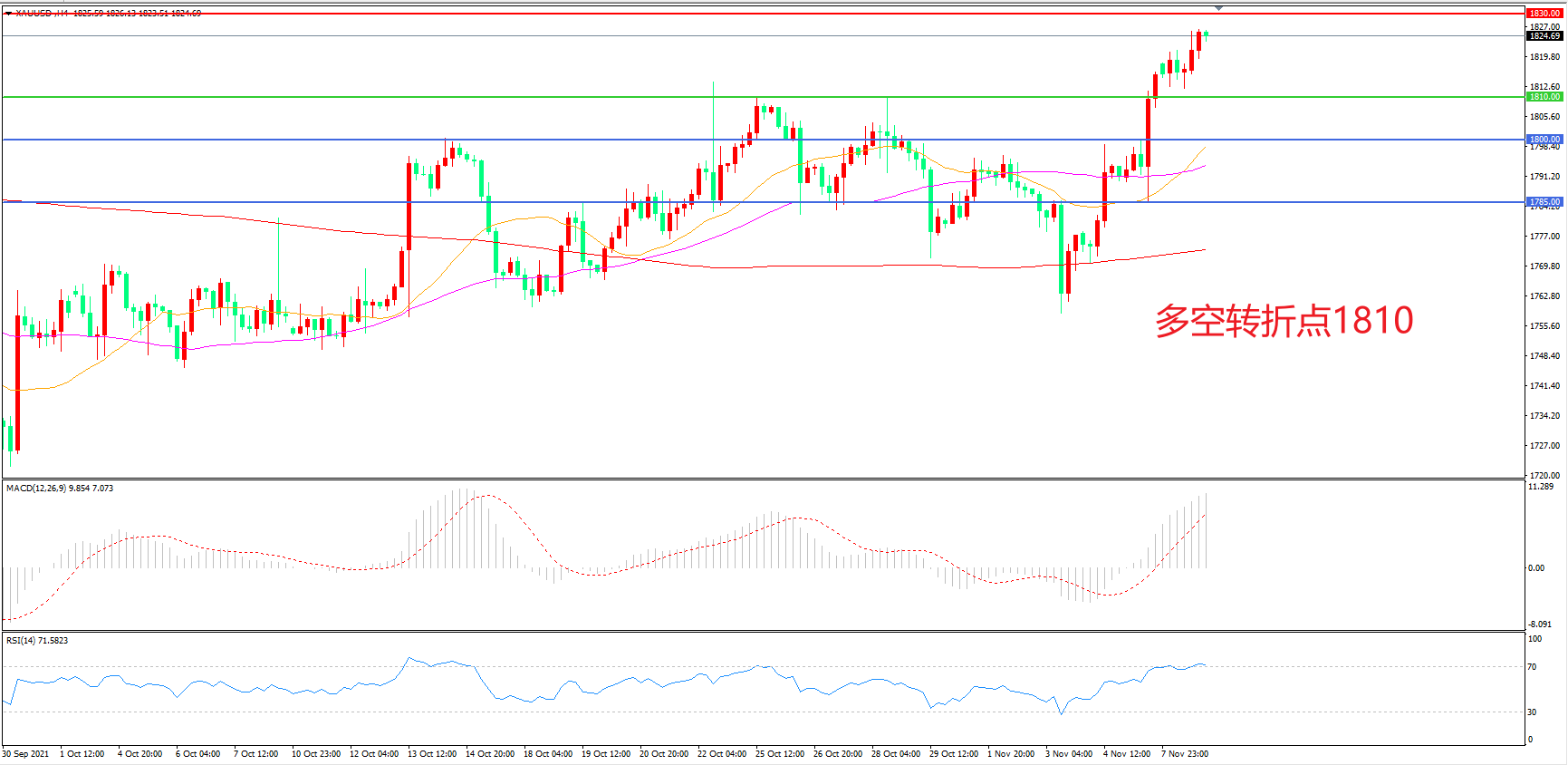 交易策略:在1810.00之上看涨,目标1830.00 1845.00