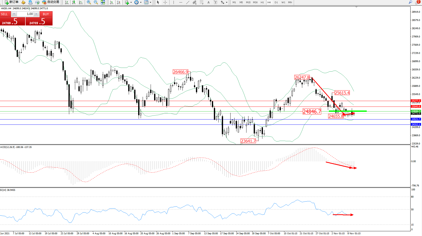 恒指HK50 ——4小时K线图显示: