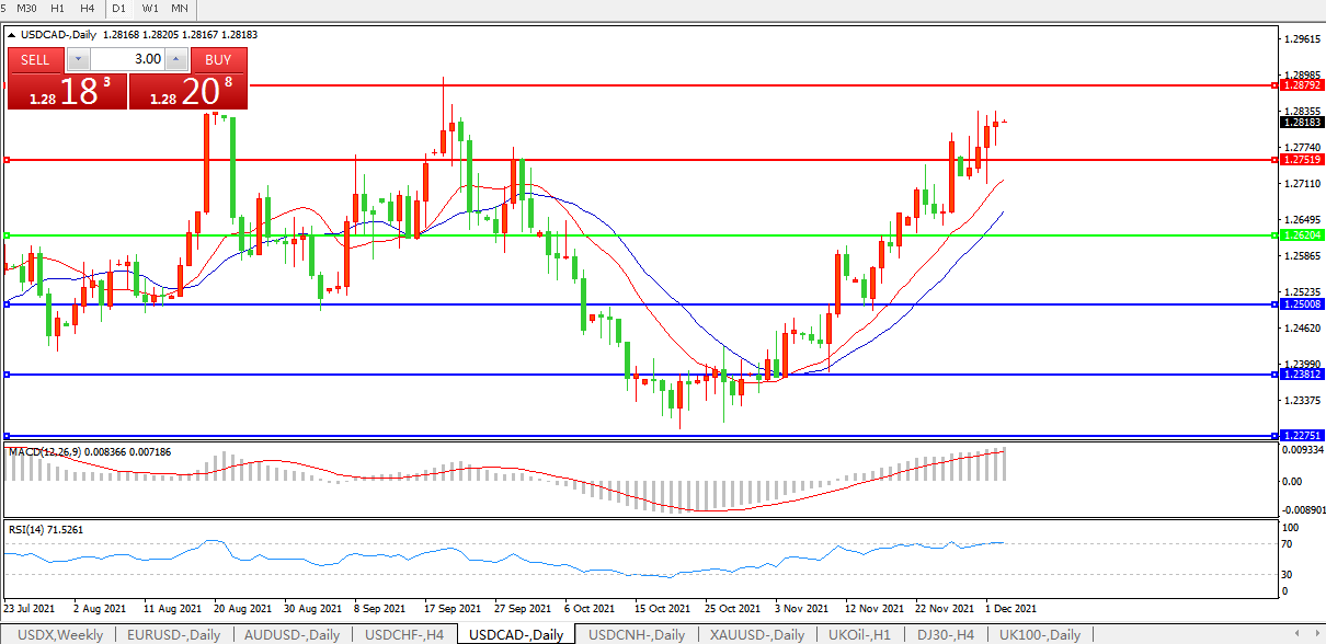 美元兑加元USDCAD 日线图: