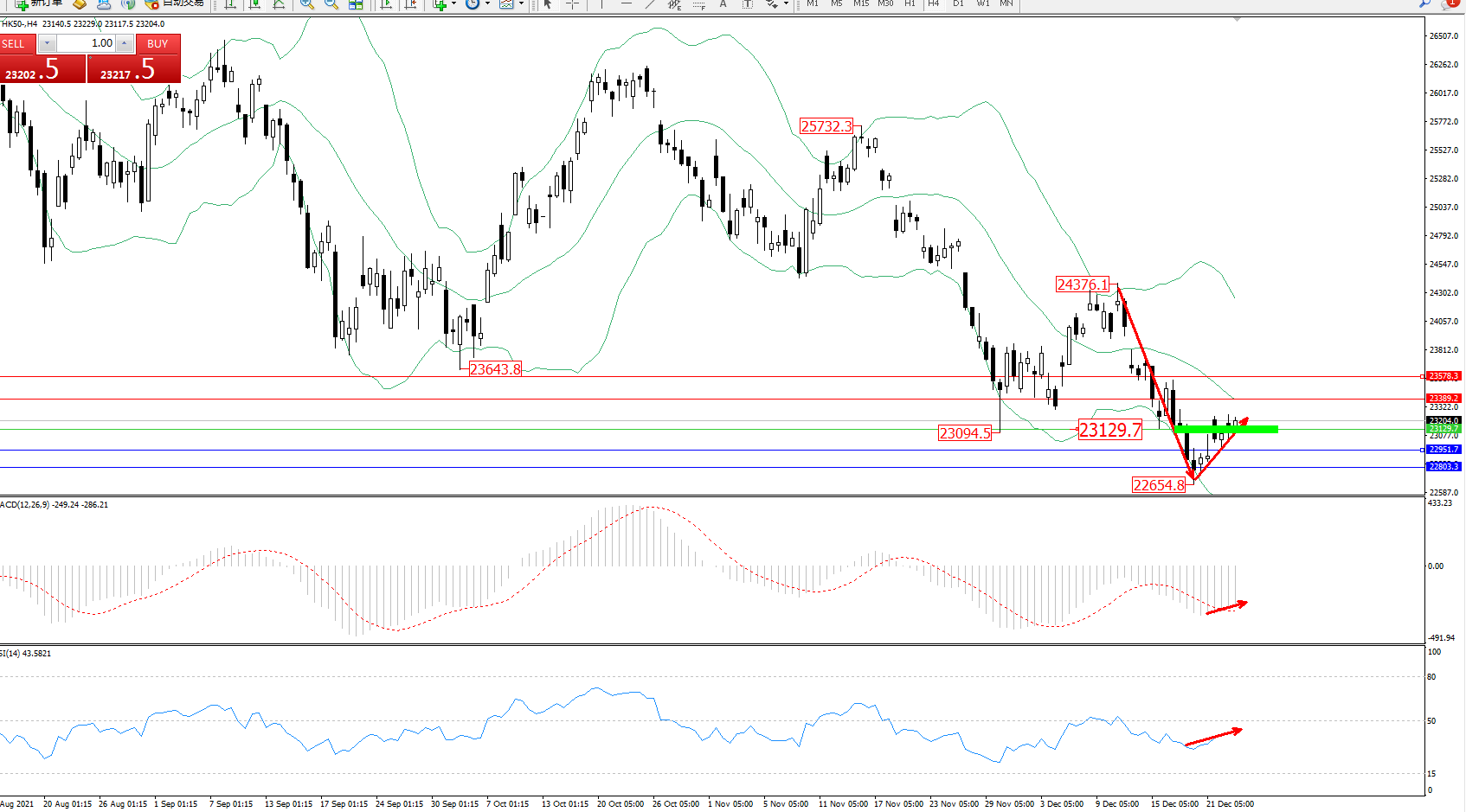 恒指HK50 ——4小时K线图显示: