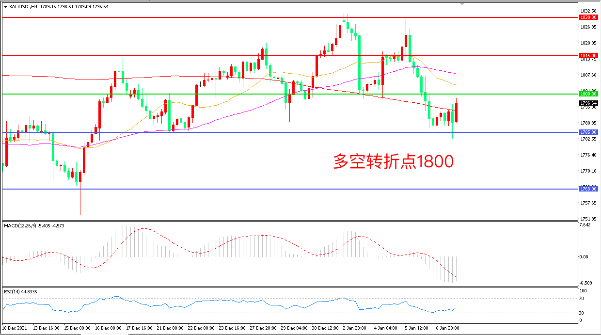 交易策略:在1800.00之下看跌,目标1785.00 1763.00