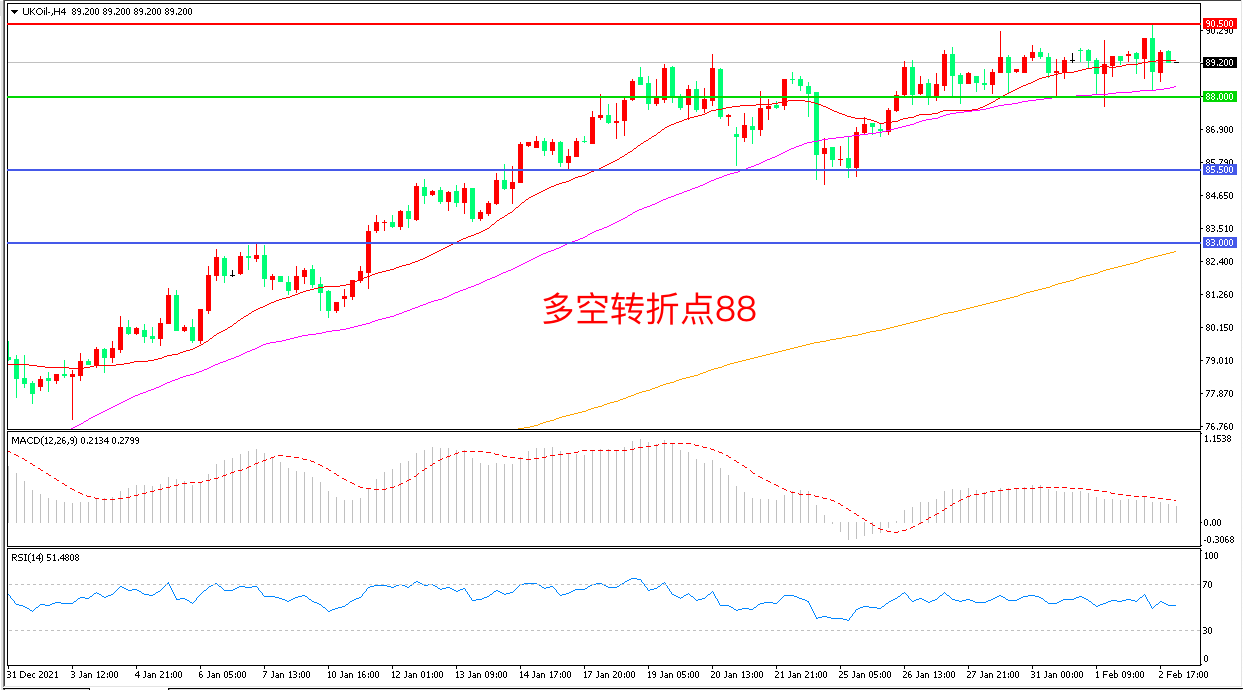 交易策略:在88.00之上看涨,目标90.50 93.00