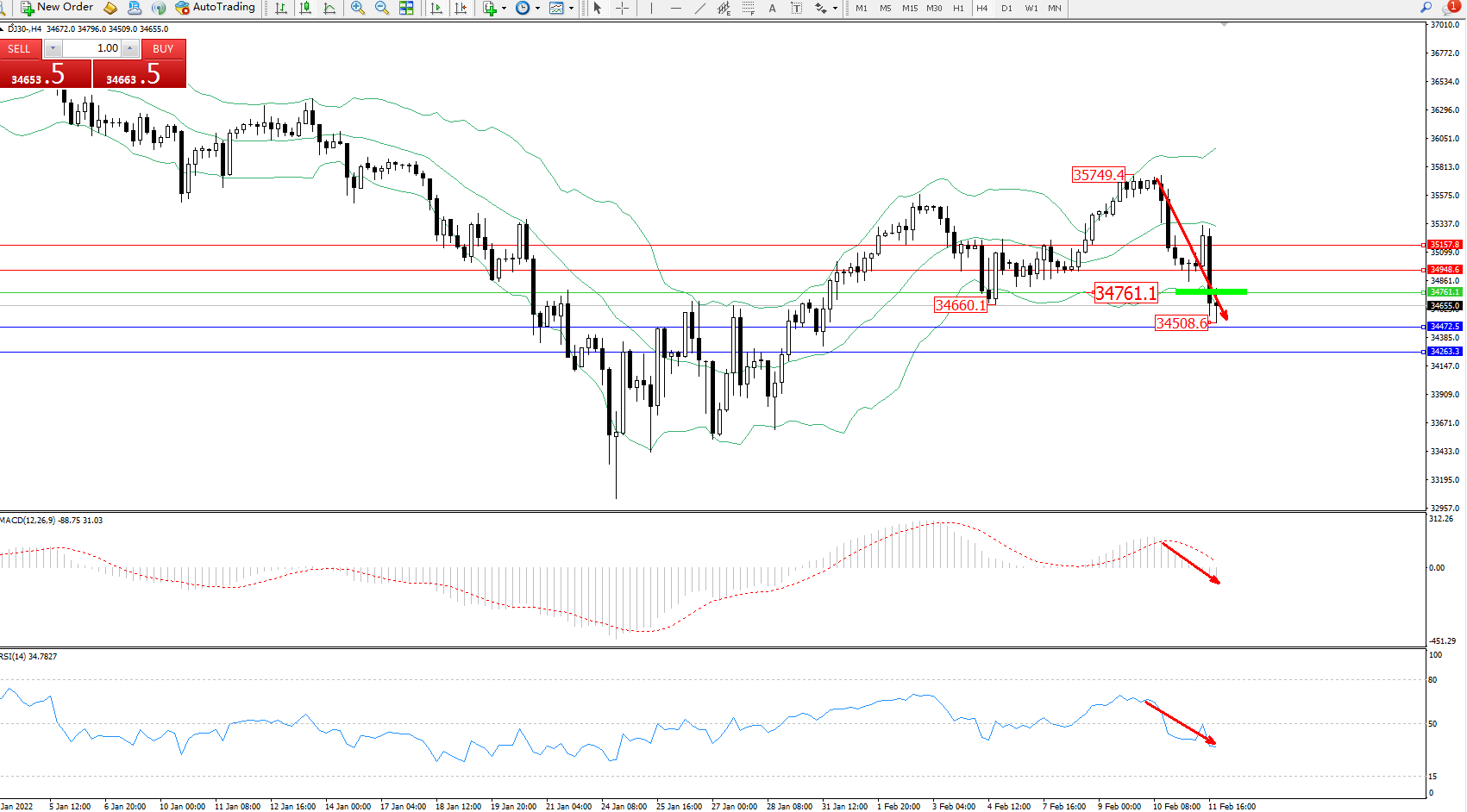 交易策略:34761下方看跌,目标34472、34263