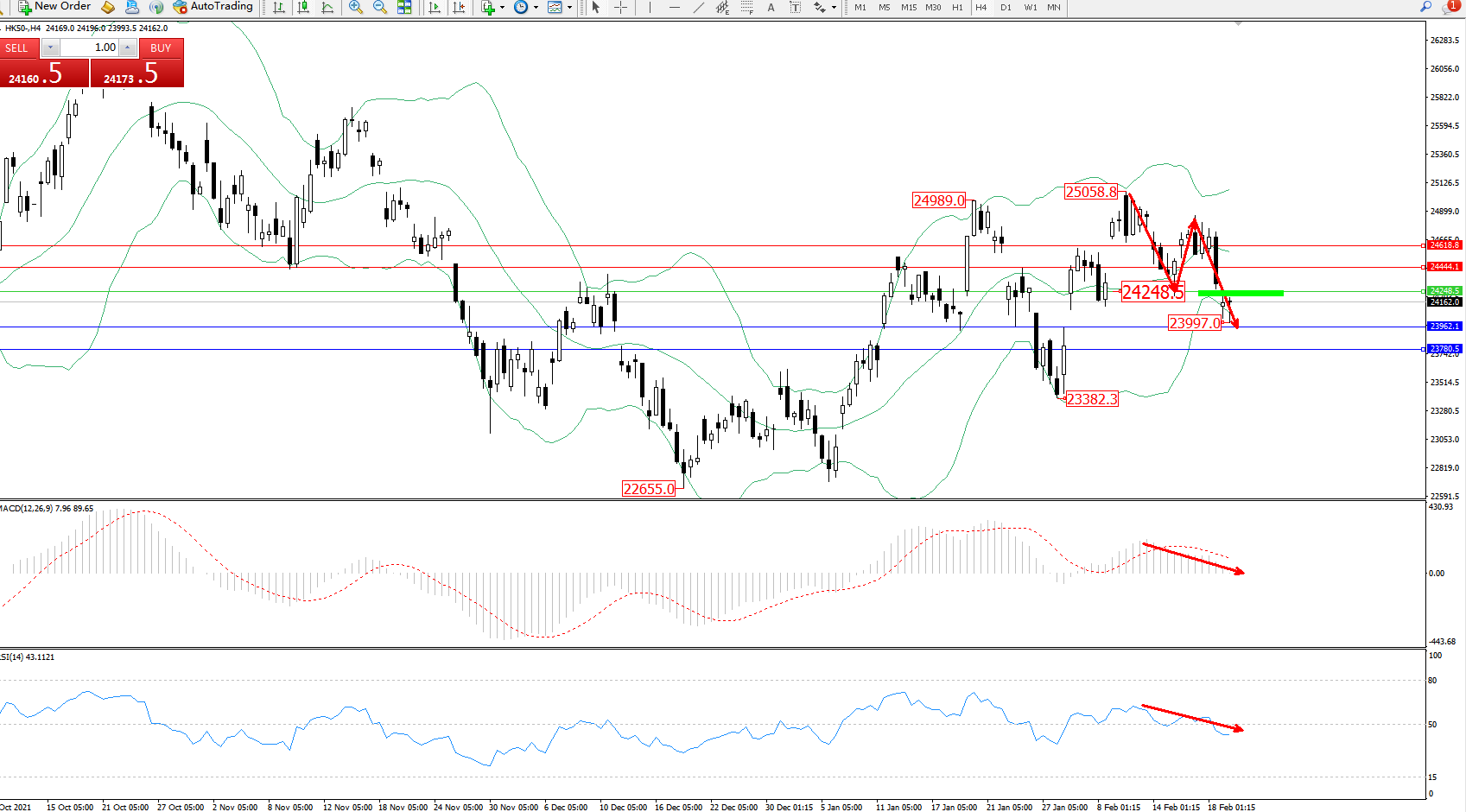 恒指HK50 ——4小时K线图显示: