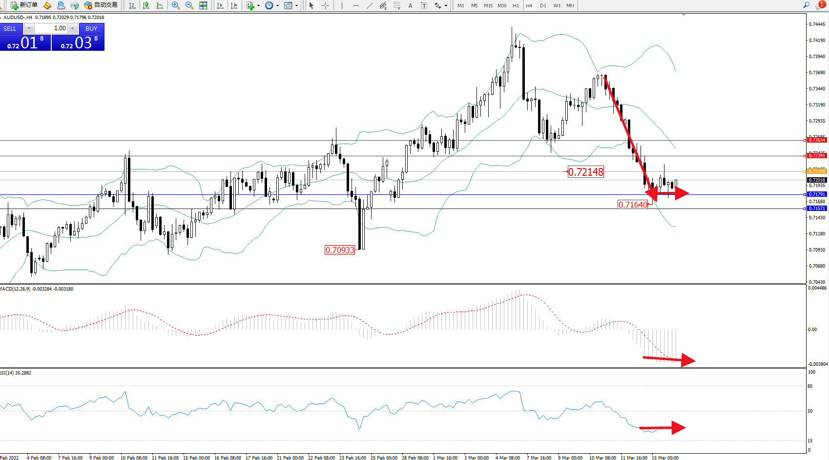 交易策略:0.72148下方看跌,目标0.71791、0.71571