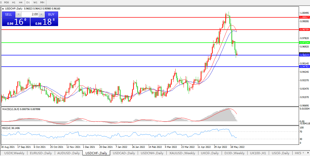 美元兑瑞郎USDCHF 日线图:
