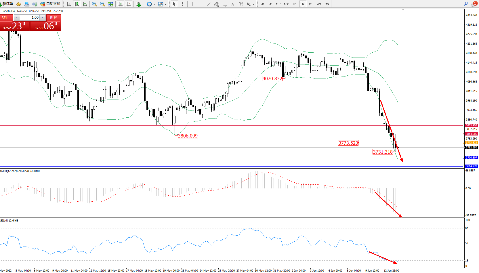标普SP500——4小时K线图显示: