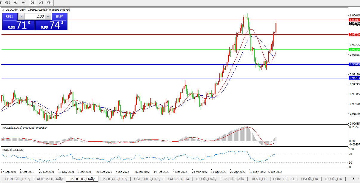 USDCHF  USDCAD 担忧联储激情加息,美元兑瑞郎持续上攻