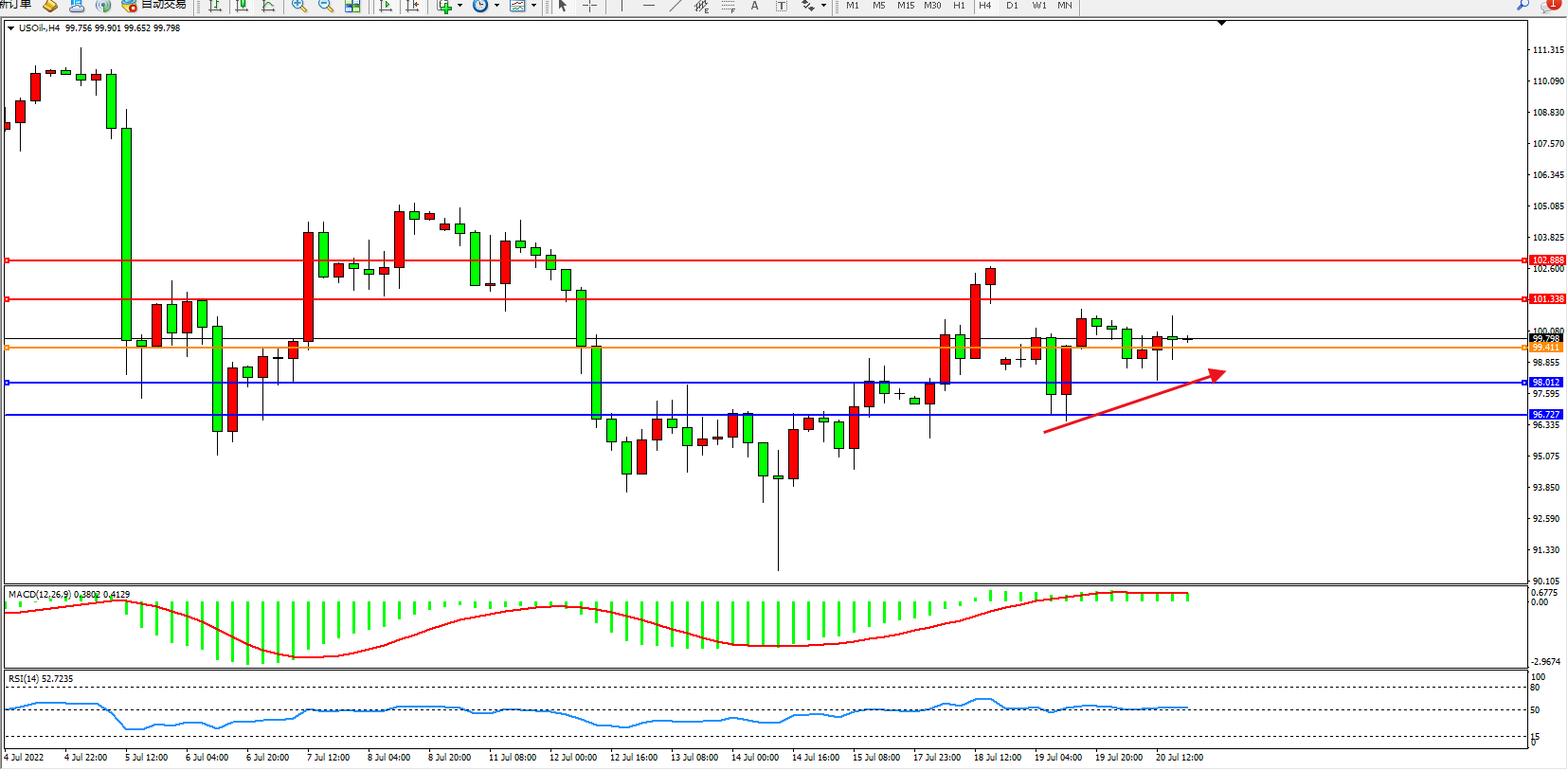 交易策略:99.411上方看涨,目标101.338、102.888