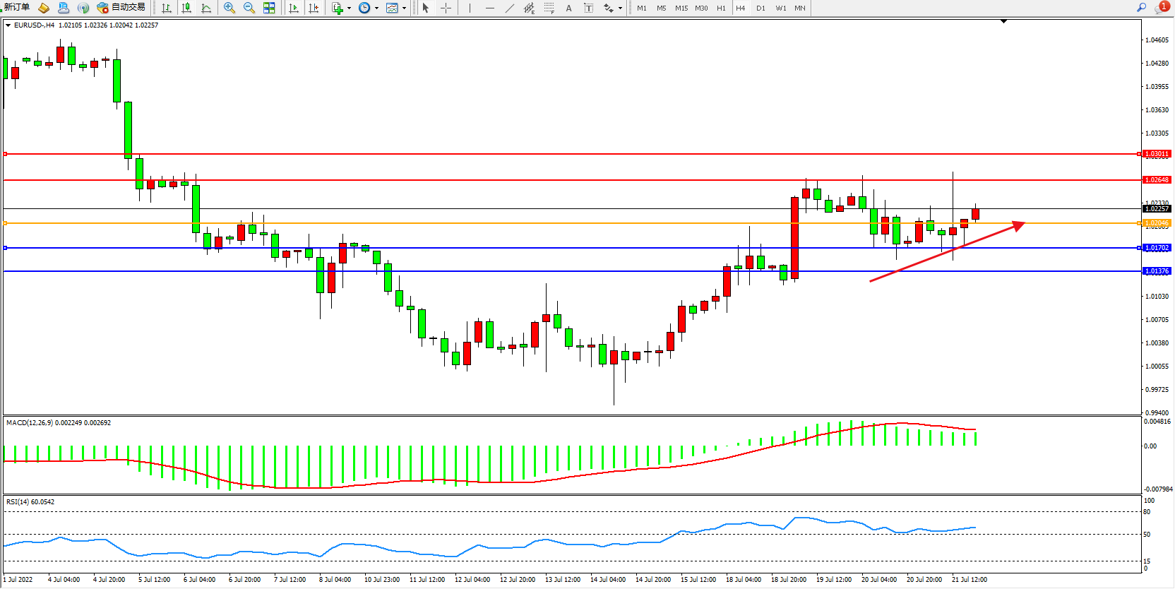 交易策略:1.02046上方看涨,目标1.02648、1.03011