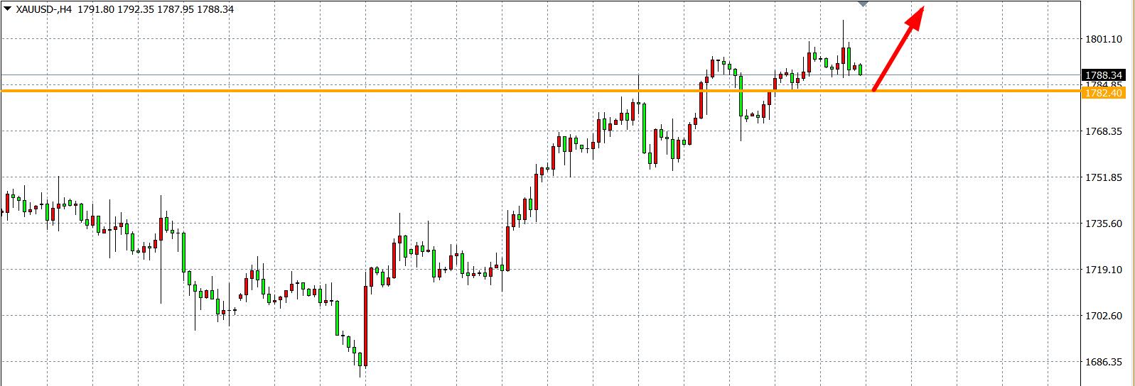 交易策略:在1782.00之上看涨,目标1800.00           1820.00