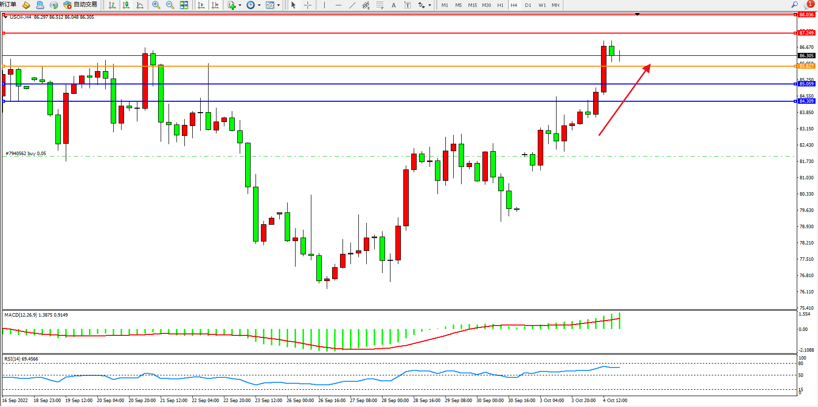 美油:多头强势拉升