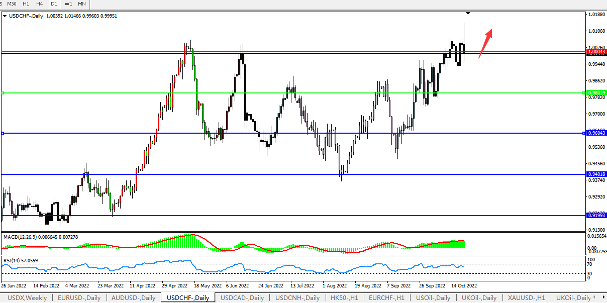 美元兑瑞郎USDCHF 日线图
