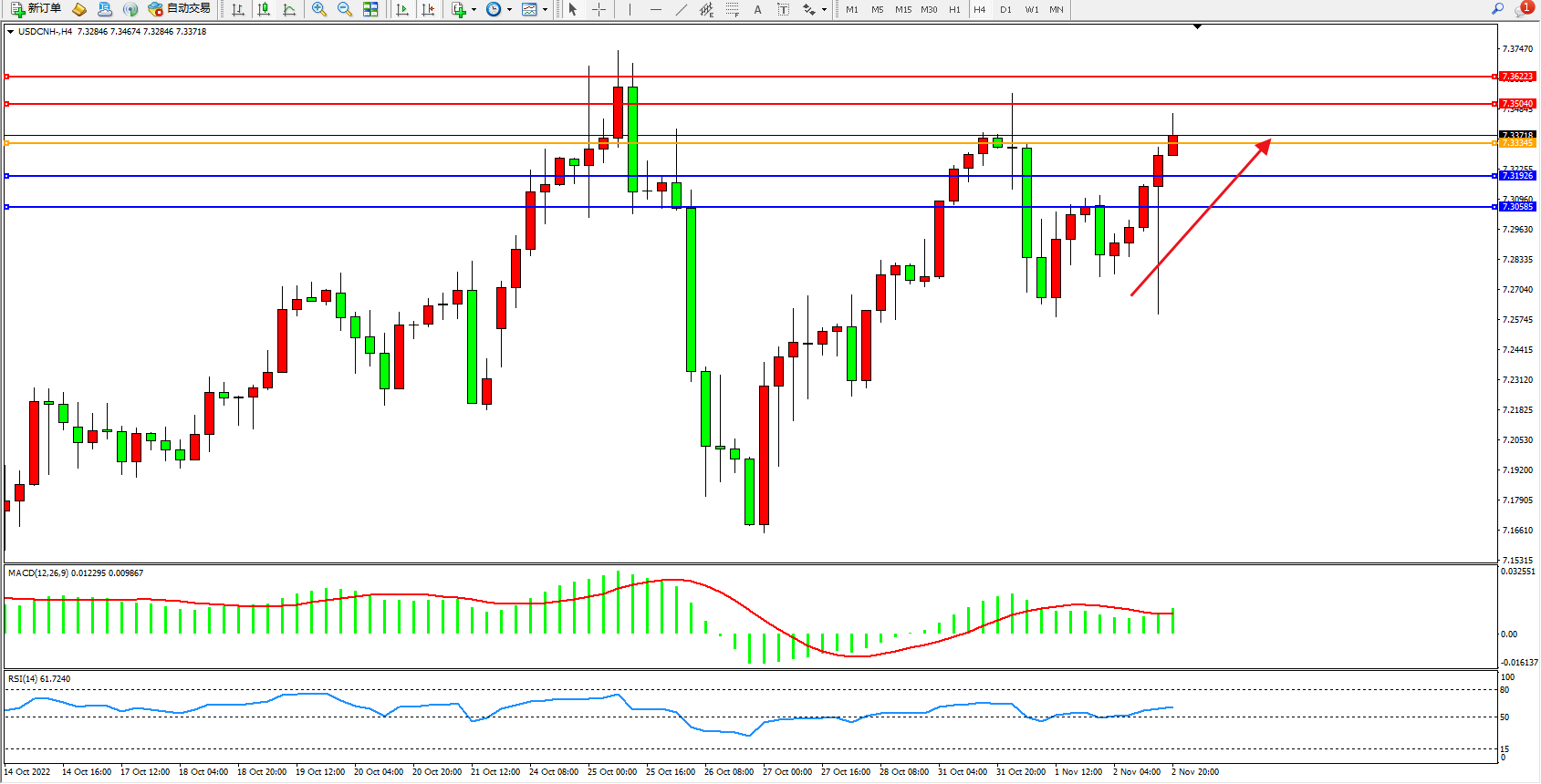 备选策略:7.33345下方看跌,目标7.31926、7.30585
