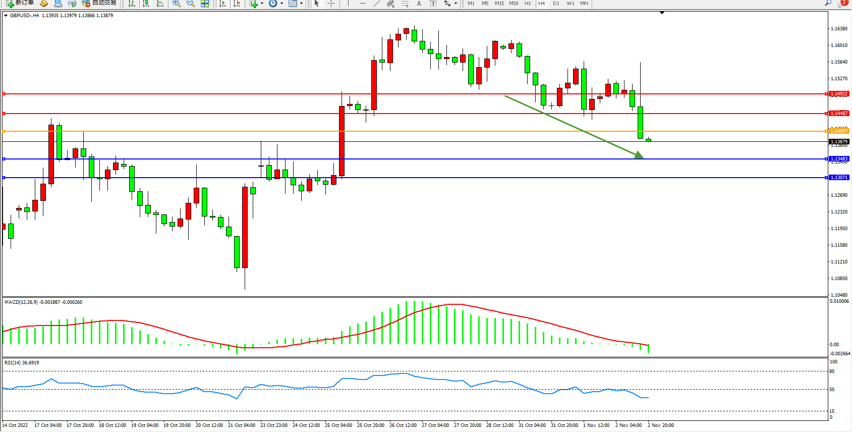备选策略:1.14097上方看涨,目标1.14487、1.14922