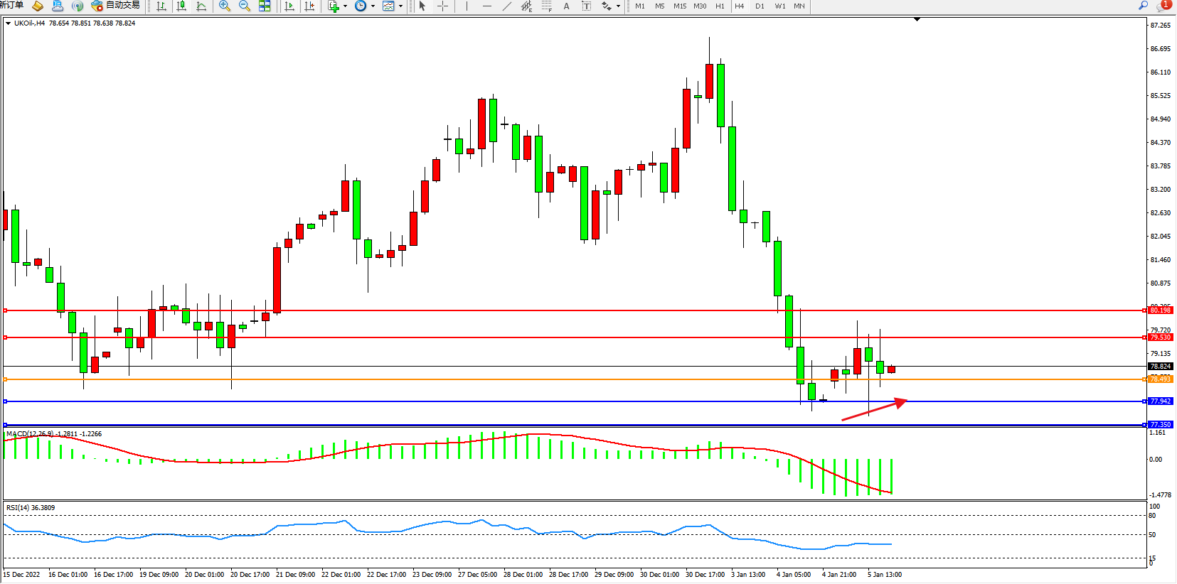 布油UKOil——4小时K线图显示: