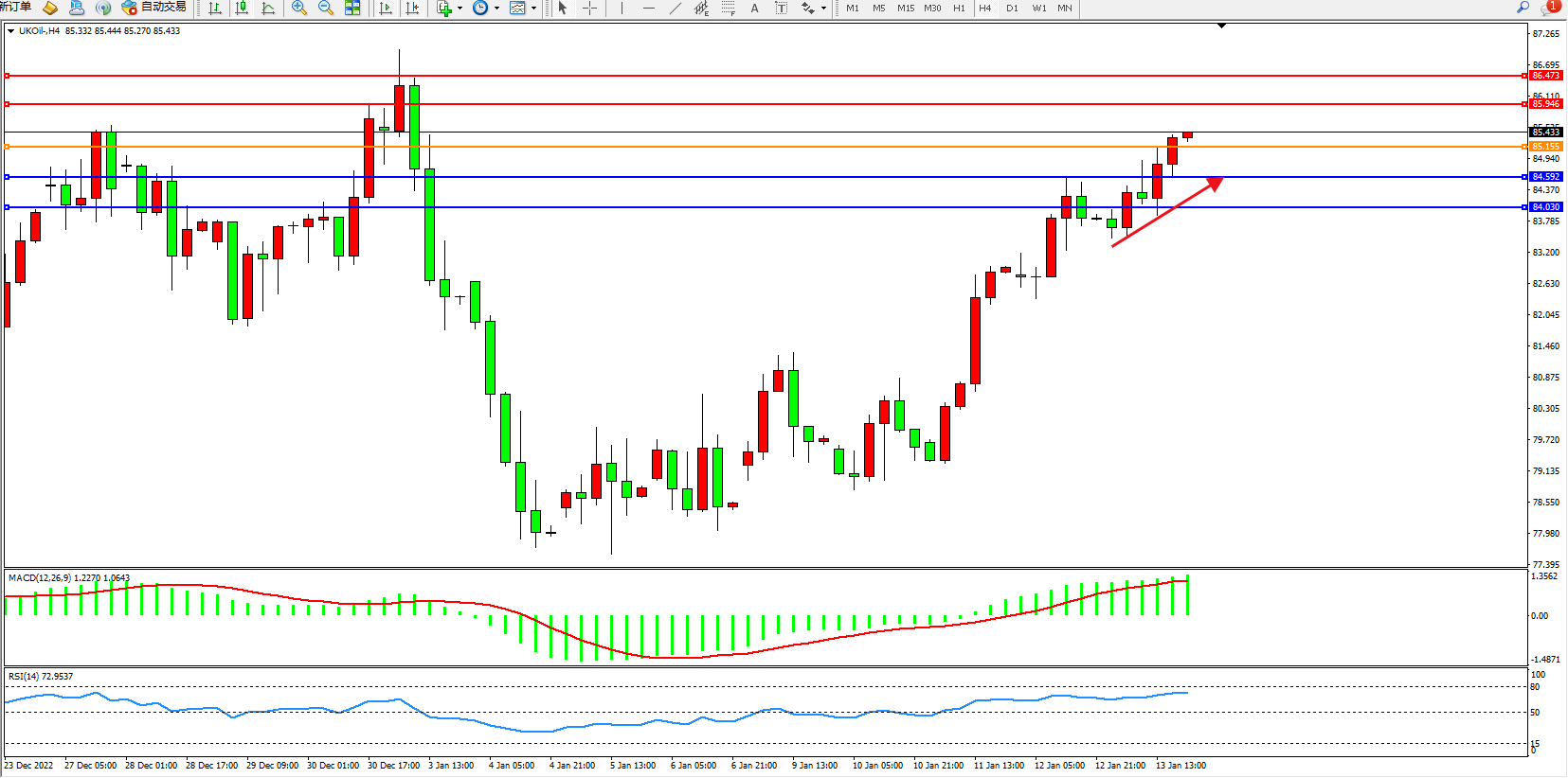 布油UKOil——4小时K线图显示: