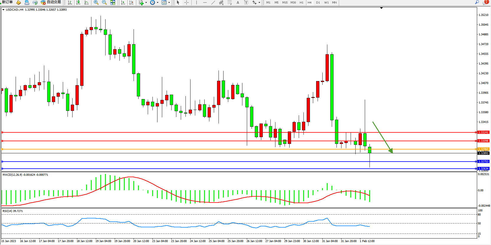 美元加元USDCAD——4小时K线图显示: