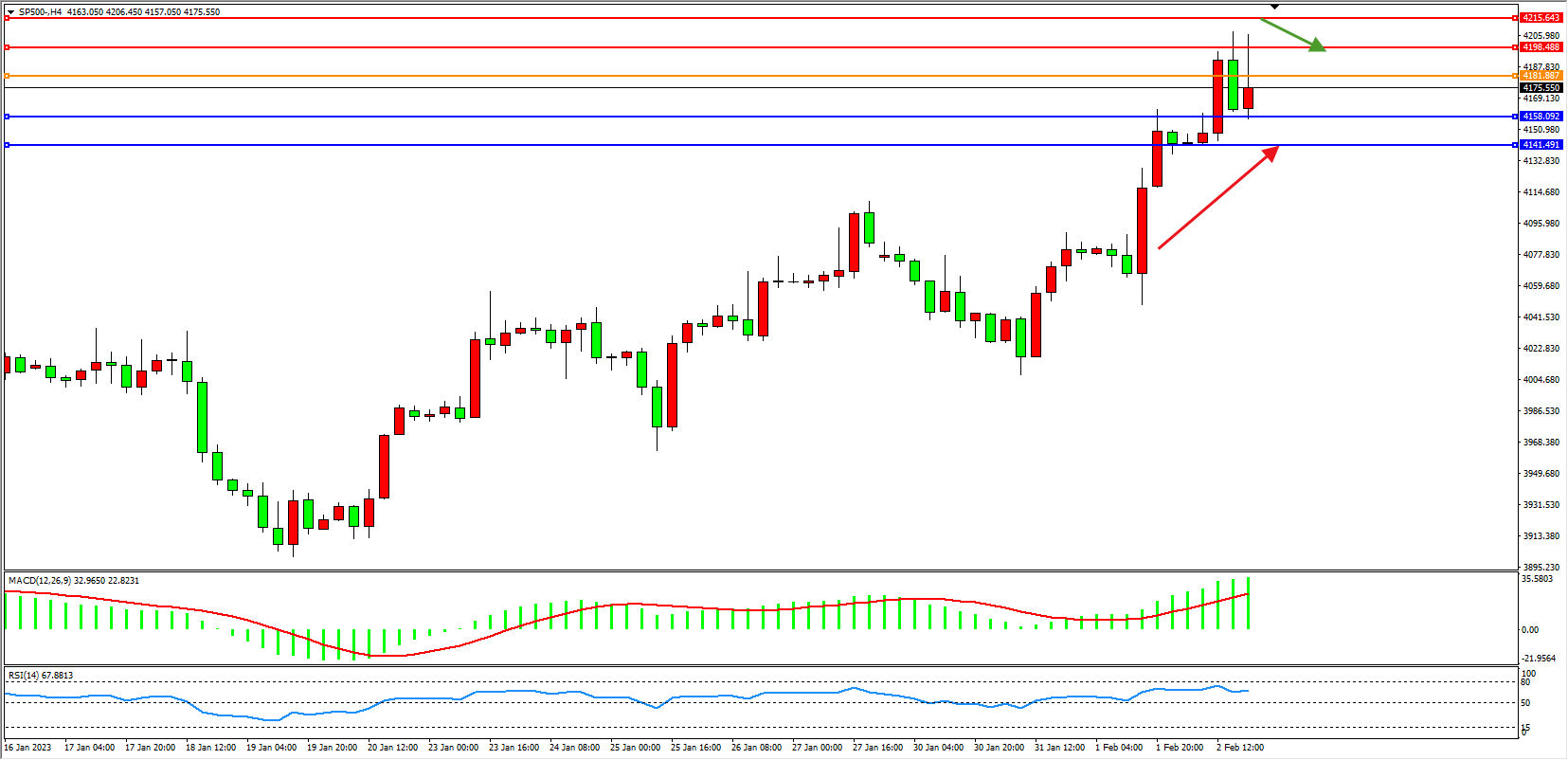 标普500指数2月2日(周四)收盘上涨59.49点,涨幅1.44%,报4178.70点;美国第四季度非农生产力增幅为一年来最大,同时单位劳动力成本增速放缓,这种情况意味着,如果持续下去,美国的通胀压力将进一步放缓。