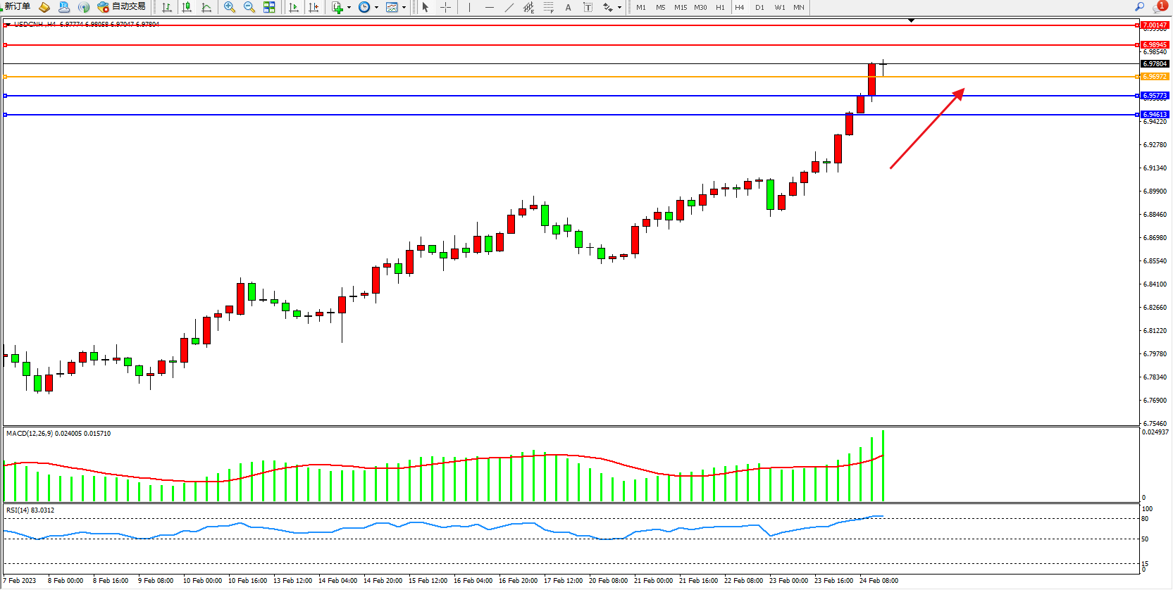 USDCNH:高位攀升 USDCNH  HKDCNH
