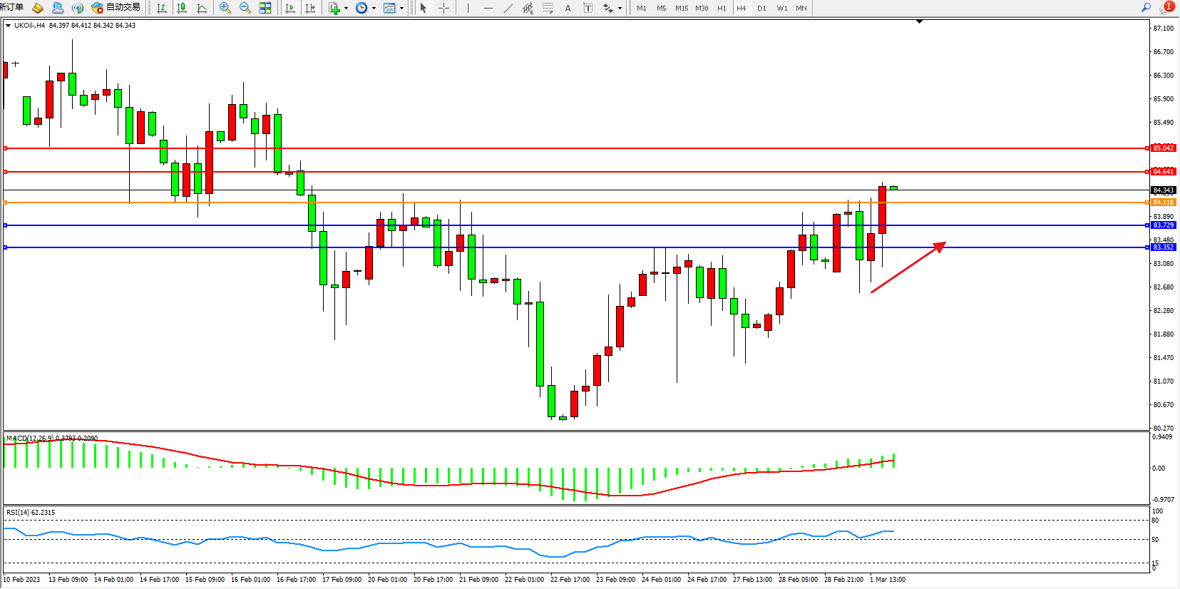 布油UKOil——4小时K线图显示: