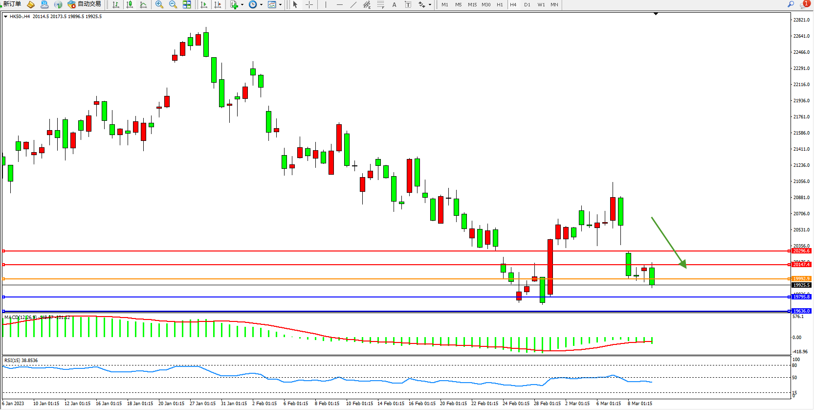 恒指HK50 4小时图