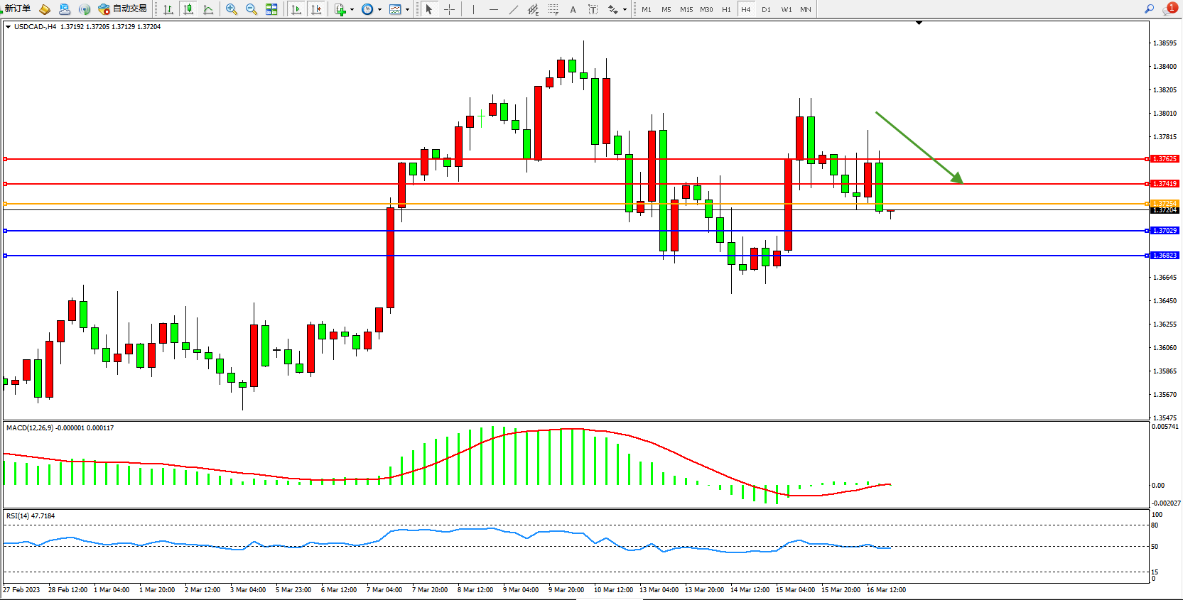 美元加元USDCAD——4小时K线图显示: