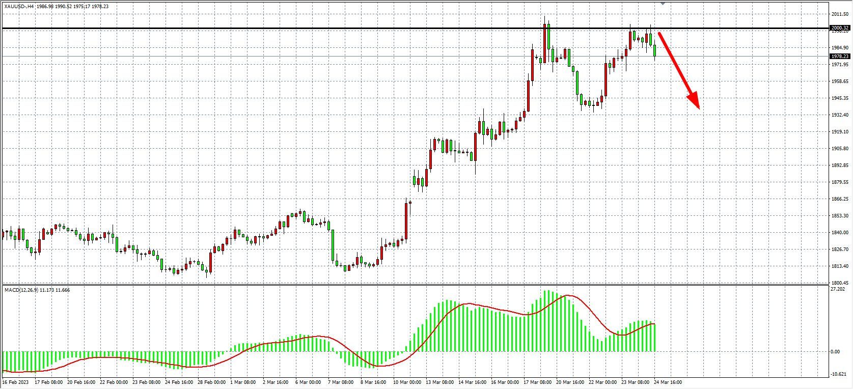 现货黄金XAUUSD四小时图