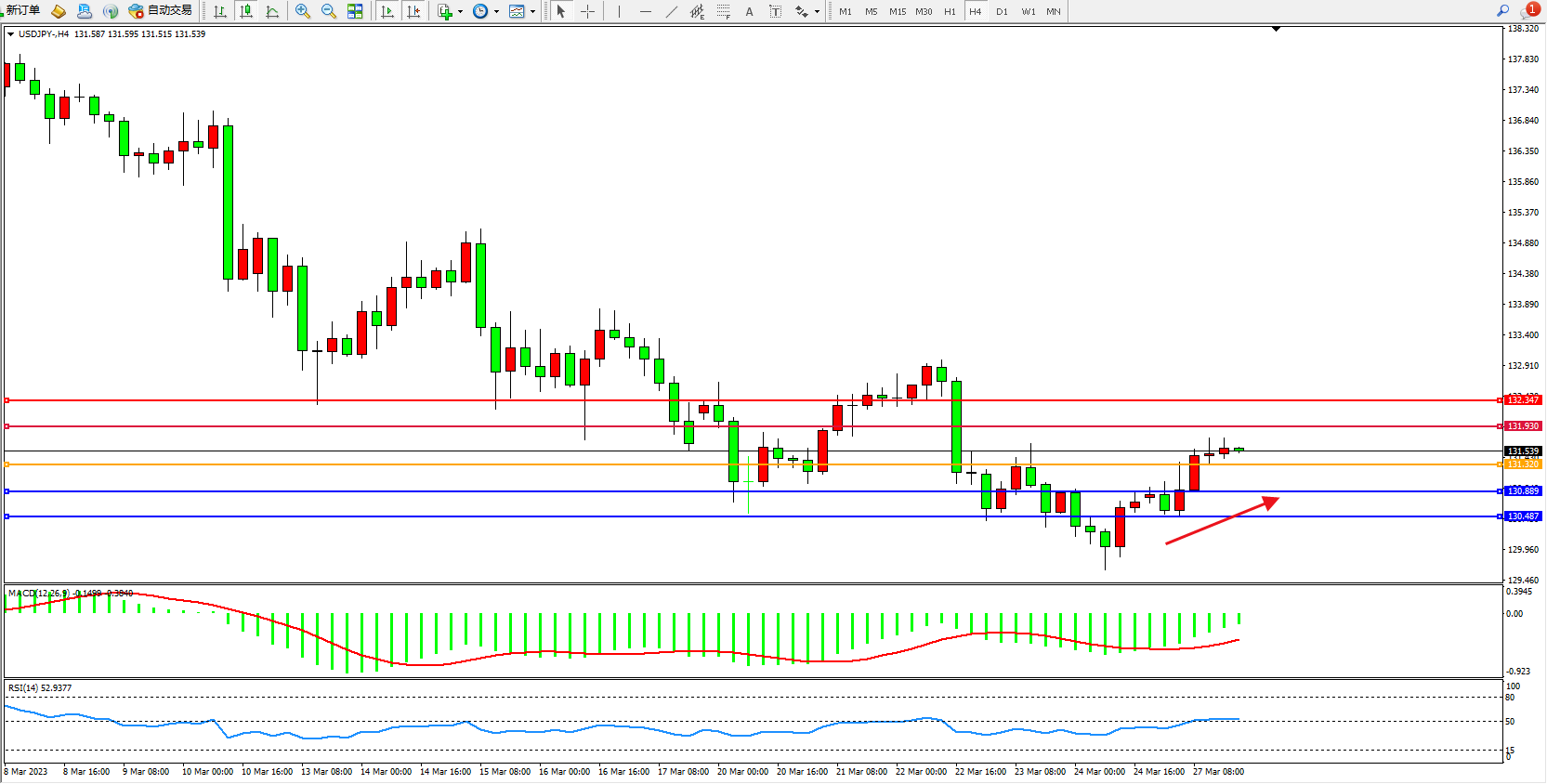 交易策略:131.320上方看涨,目标131.930 132.347