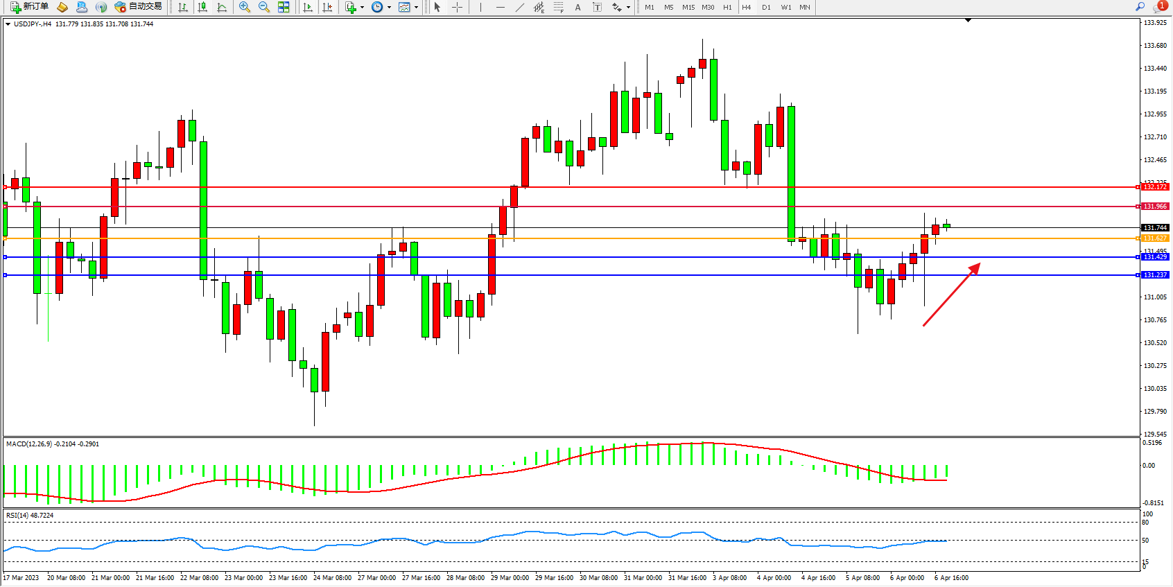交易策略:131.627上方看涨,目标131.966 132.172