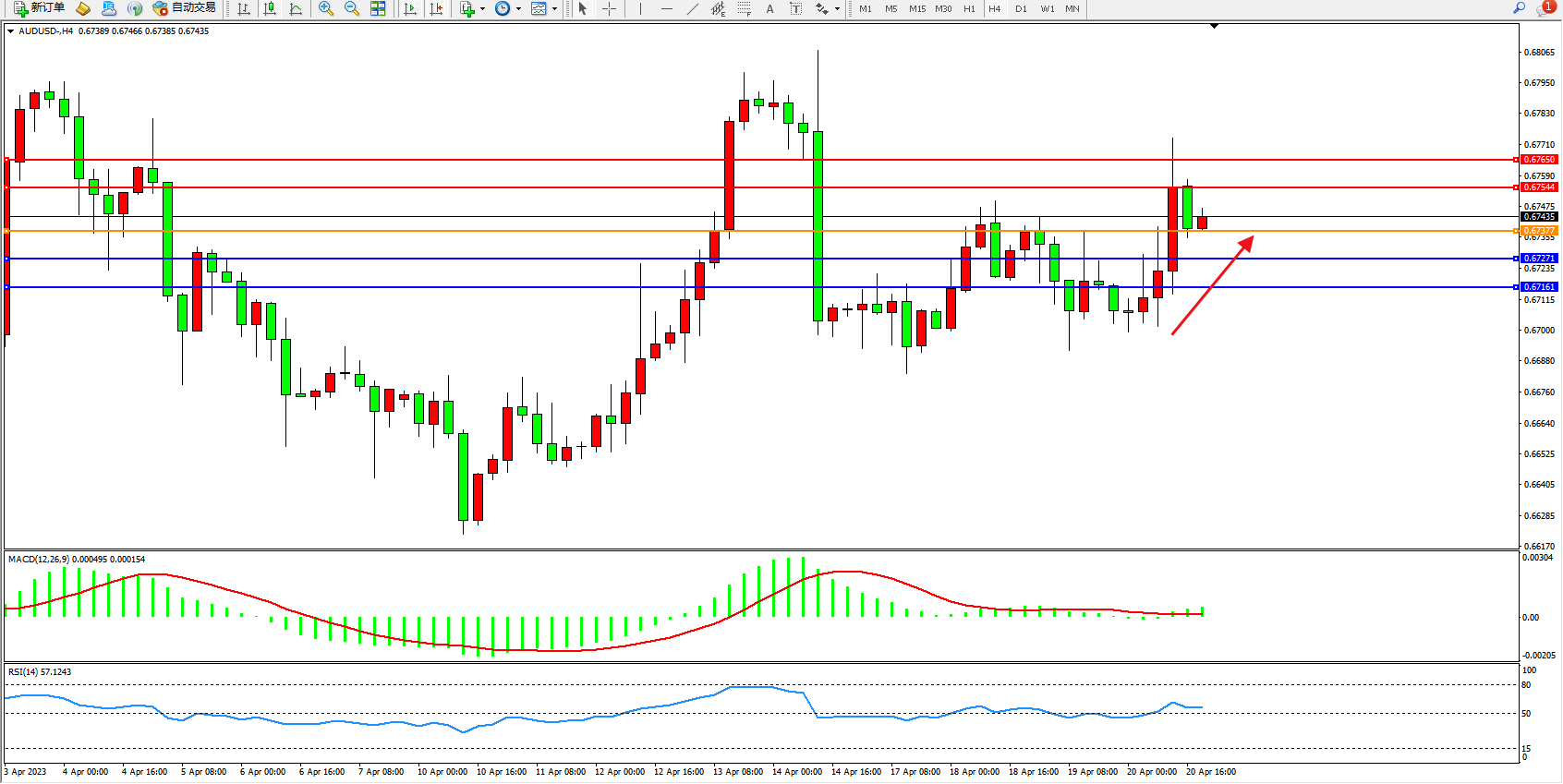 阻力位:0.67544 0.67650