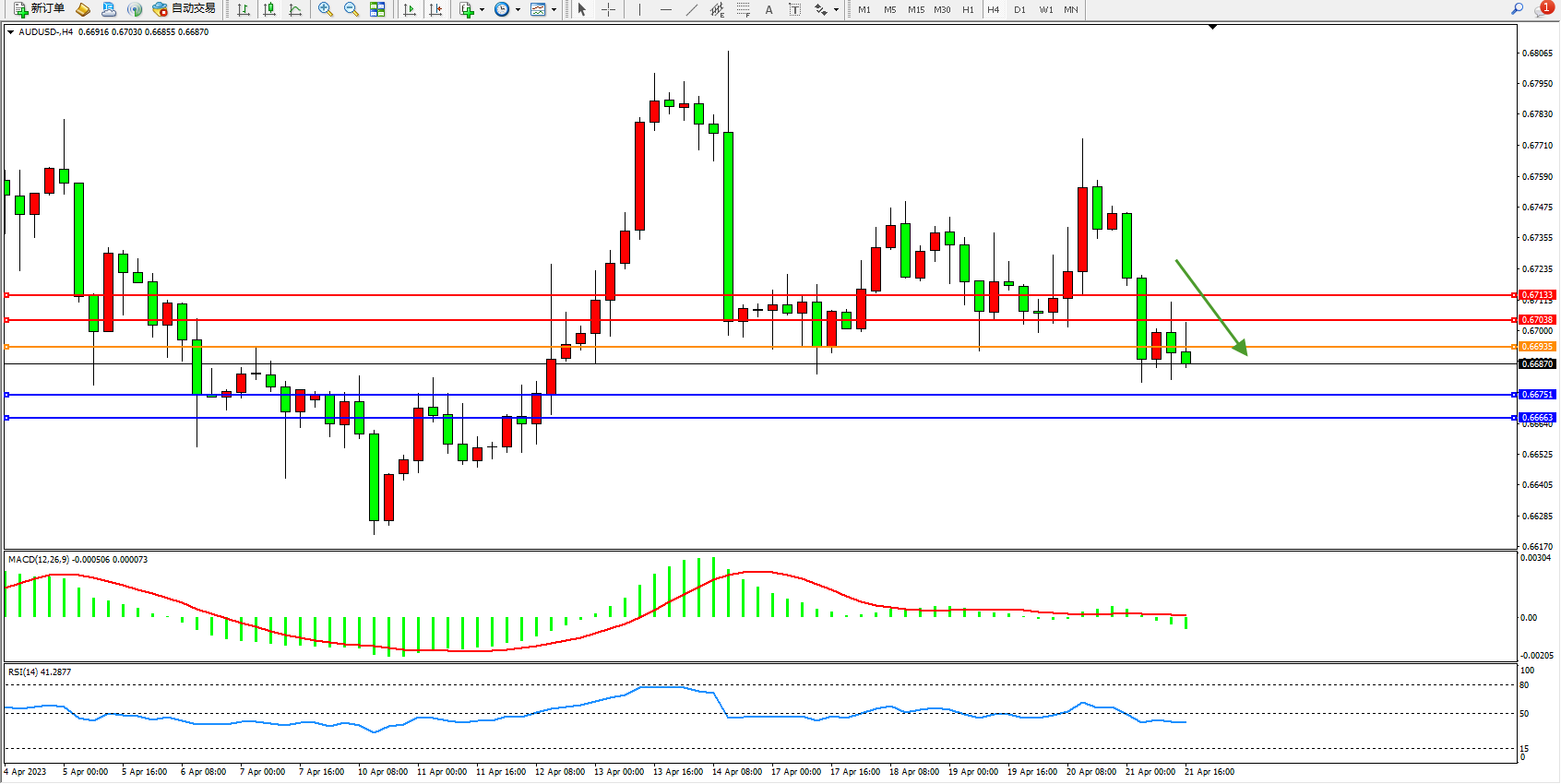 交易策略:0.66935下方看跌,目标0.66751  0.66663
