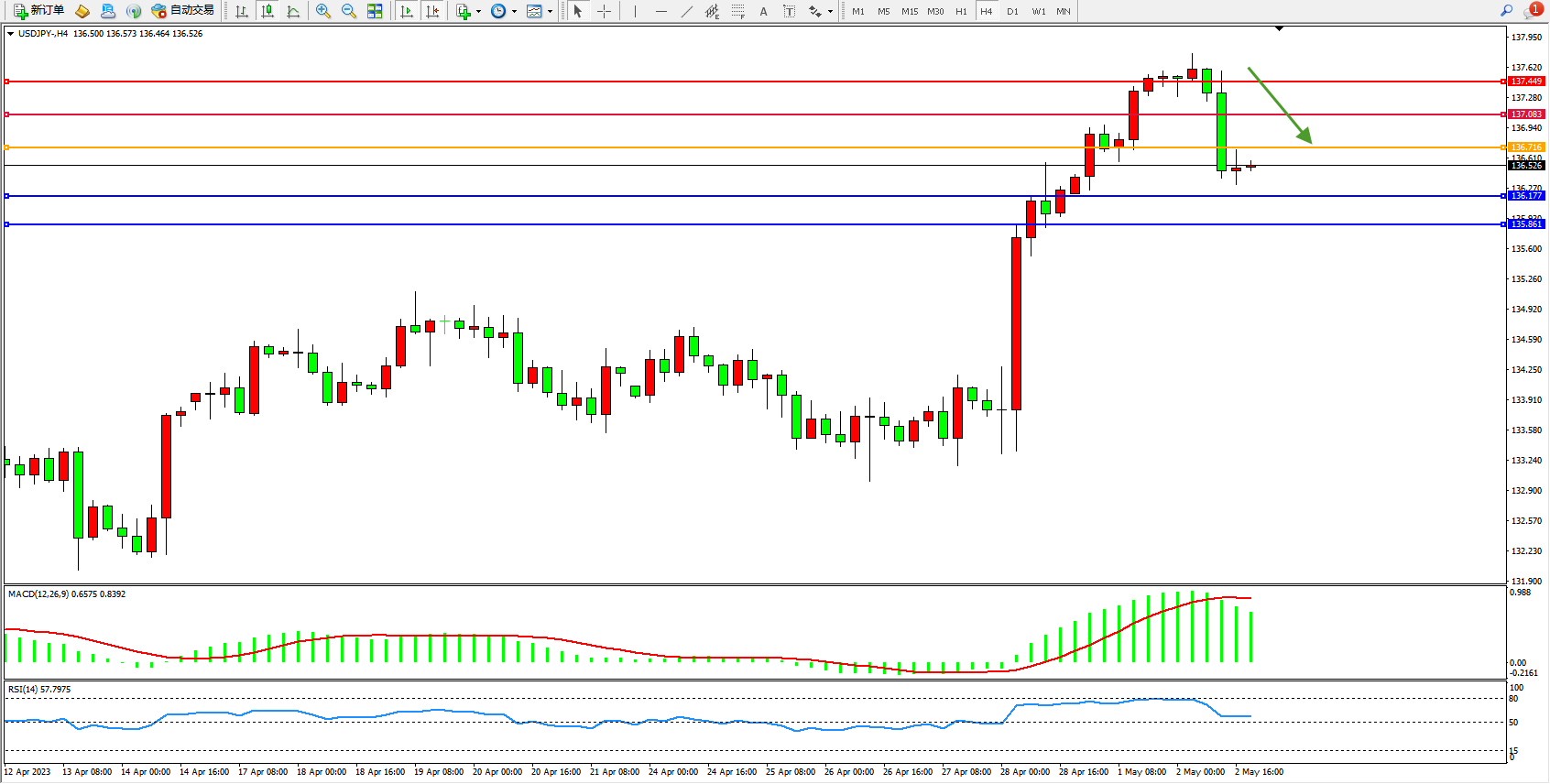 交易策略:136.716下方看跌,目标136.177 135.861