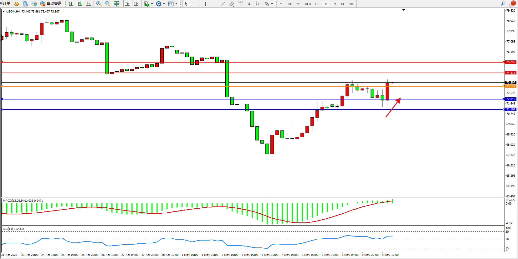 原油USOil——4小时K线图显示:
