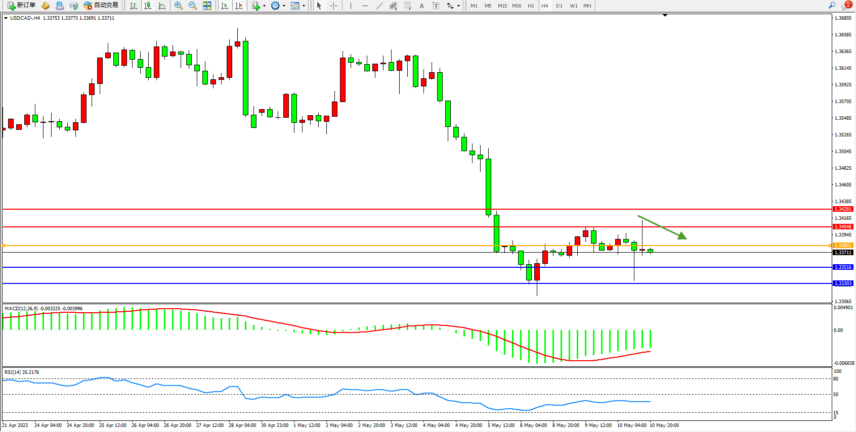 美元加元USDCAD——4小时K线图显示: