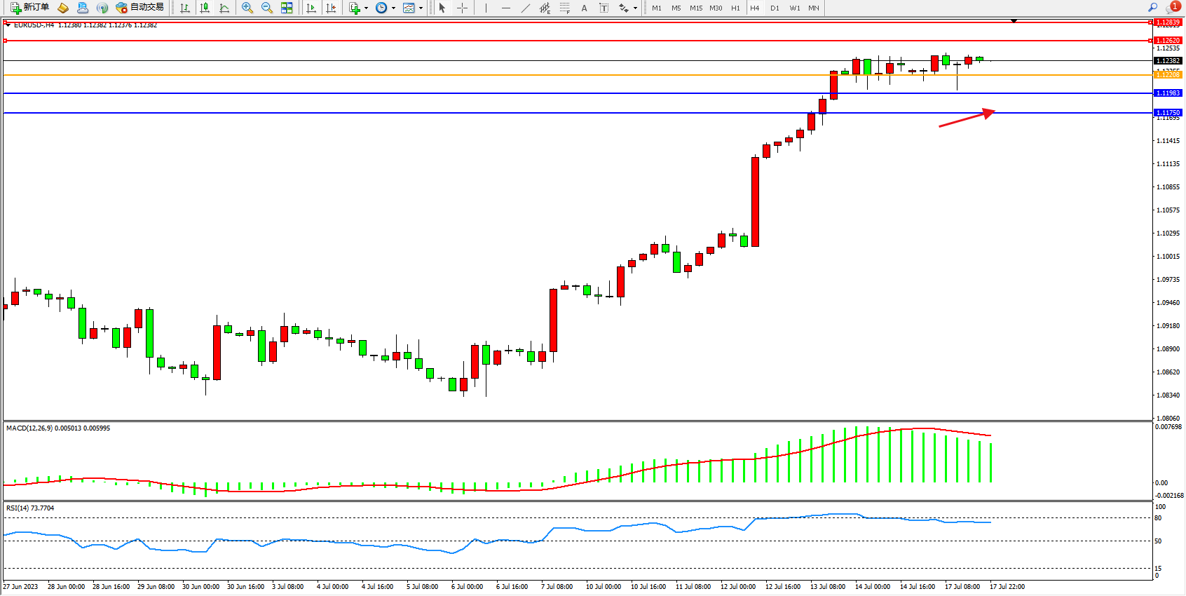 支撑位:1.11983 1.11750