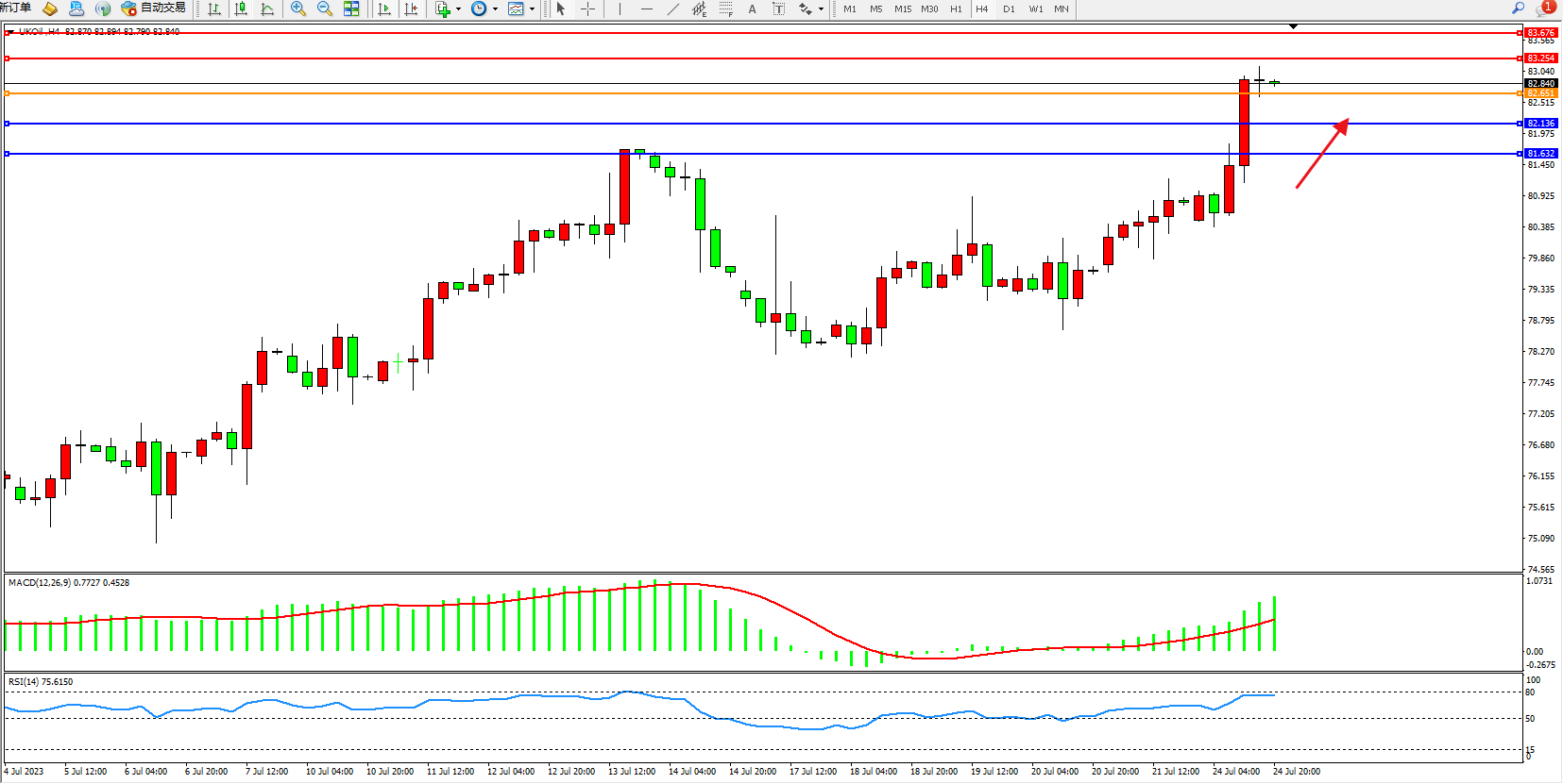 布油UKOil——4小时K线图显示: