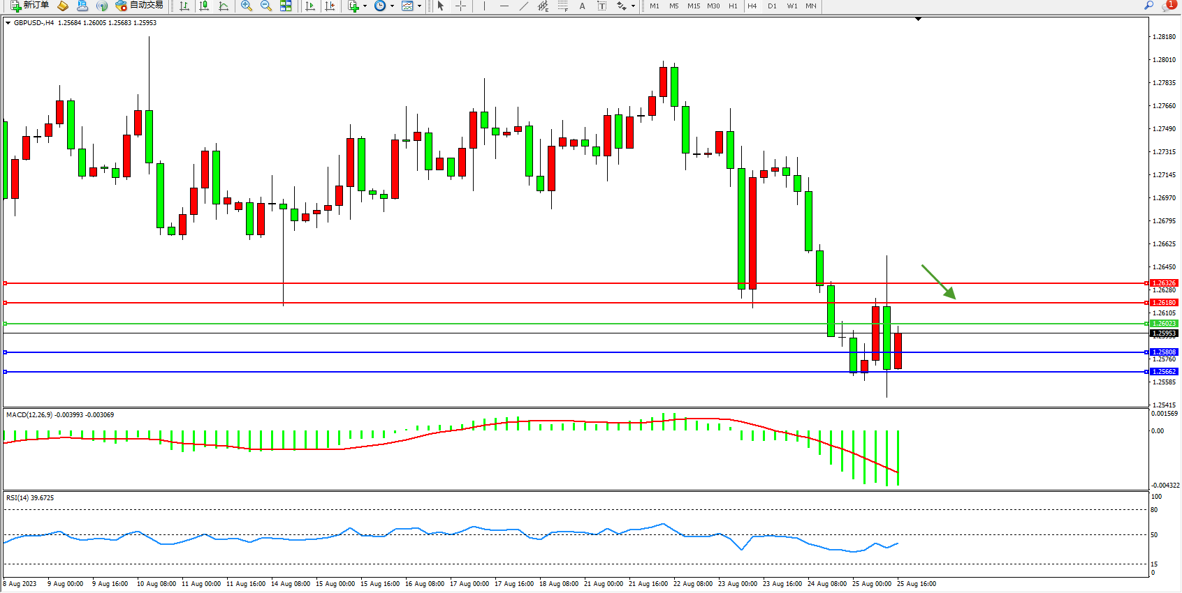 交易策略:1.26023下方看跌,目标1.25808  1.25662