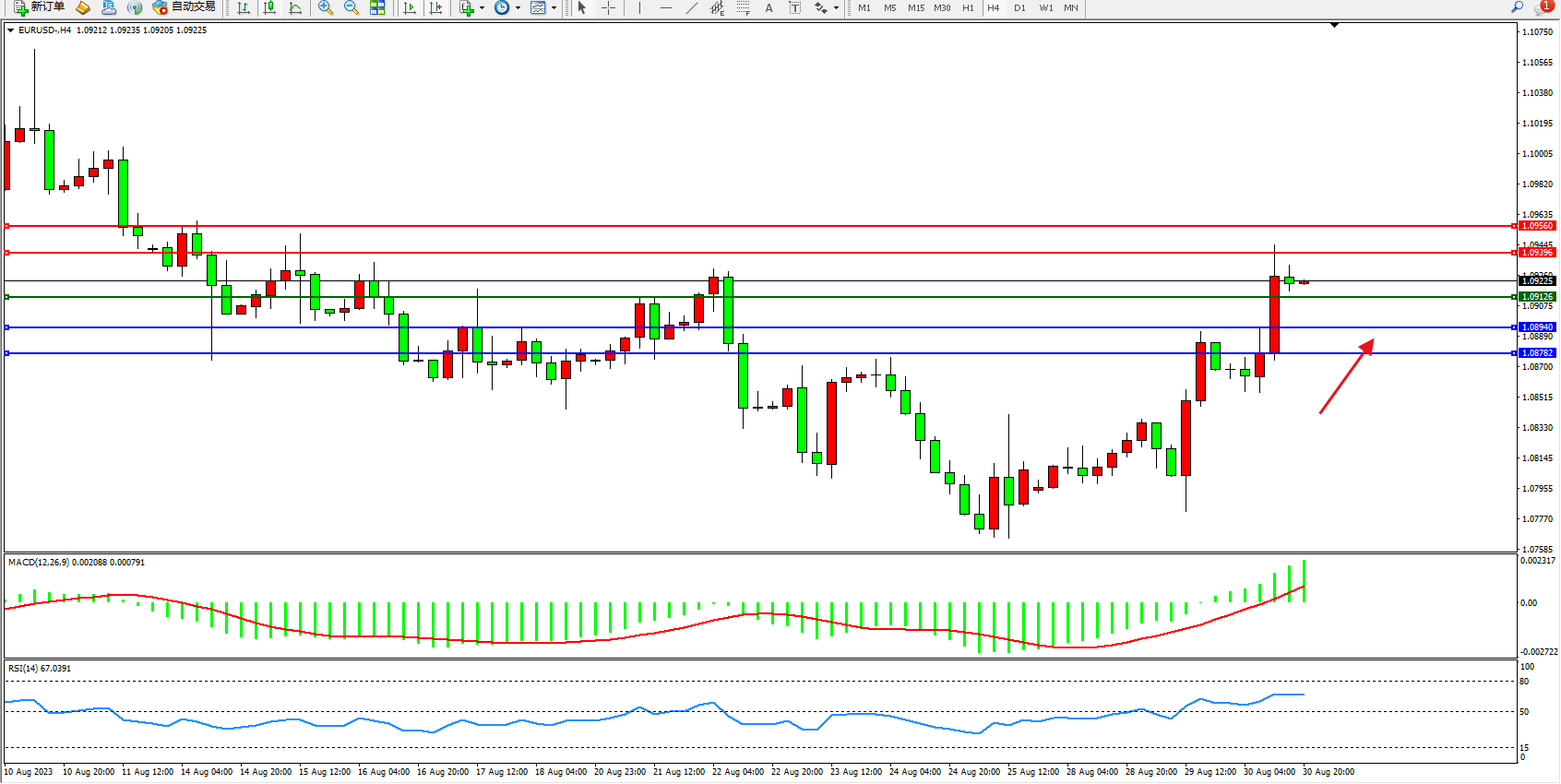 交易策略:1.09126上方看涨,目标1.09396 1.09560