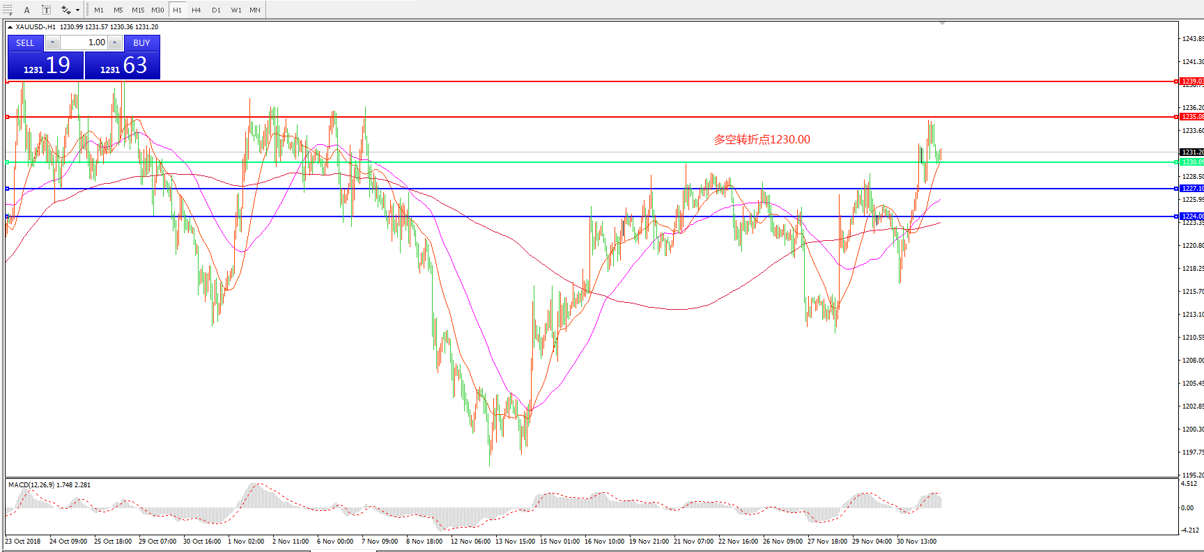交易策略:1230之上看涨,目标1235.00  1239.00