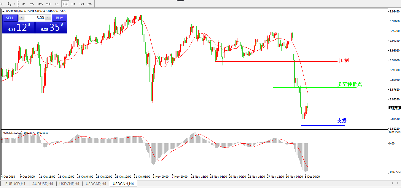 交易策略6.8780之下,看跌,目标价位为6.8245,然后为 6.7787