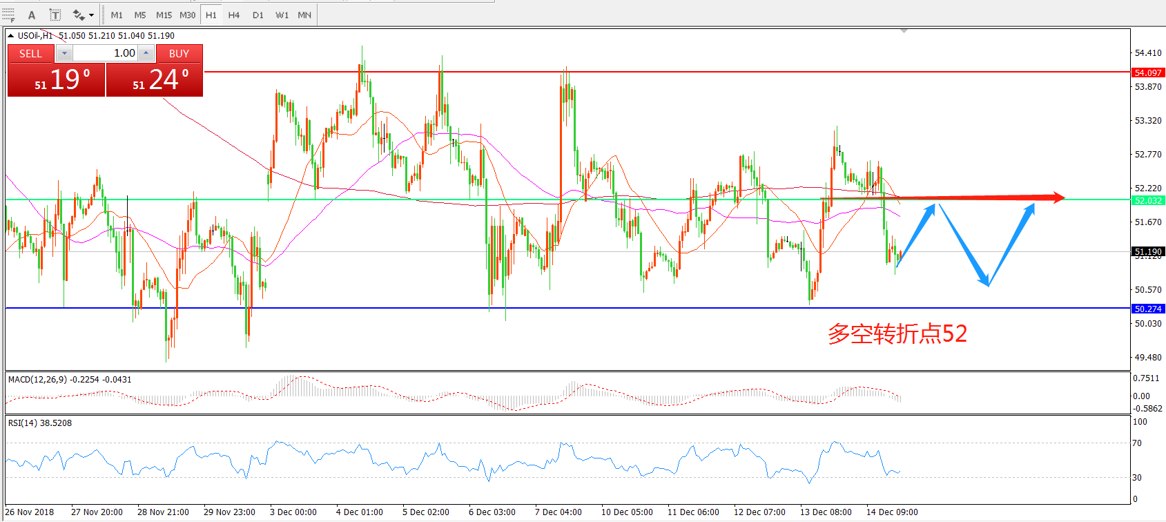 交易策略:在52.之下看跌,目标51.50   50.00