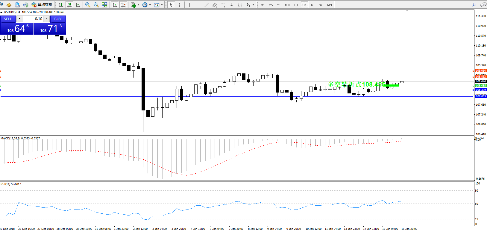 交易策略:108.455上方看涨,目标108.833109.084