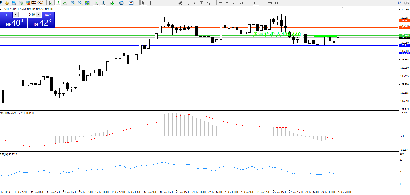 交易策略:109.448下方看跌,目标109.212109.029